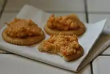 ![]() جبنة بيمنتو على قطع المقرمشات | |