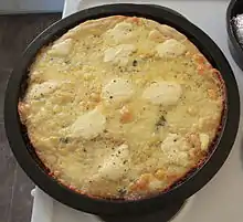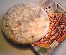 |CitationClass=تم تجاهله (مساعدة) نسخة محفوظة 2 مايو 2014 على موقع واي باك مشين. - Kielsmeier, Lester O.; Barz, Richard L.; Allen, Wesley J. (5 مارس 1991). "Method of baking pizza from coated frozen cheese granules". United States Patent 4997670. Freepatentsonline.com. مؤرشف من الأصل في 31 أكتوبر 2018. اطلع عليه بتاريخ 16 أكتوبر 2012. الوسيط