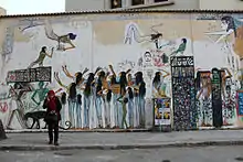 صورت بعض الجداريات المصادمات مع الأقباط أمام مبنى التلفزيون في ماسبيرو في أكتوبر 2011، ومصادمات شارع محمد محمود في نوفمبر 2011، والمواجهات التي دارت بالقرب من مجلس الوزراء في ديسمبر 2011.[3]