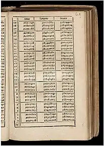 في الرياضيات، جداول قيم الدوال المثلثية مفيدة في عدة مجالات. قبل وجود الآلات الحاسبة الجيبية، كانت الجداول المثلثية ضرورية للملاحة والعلوم والهندسة التطبيقية. كان حساب الجداول الرياضية أحد المجالات المهمة للدراسة، مما أدى إلى تطوير أول أجهزة الحوسبة الميكانيكية.