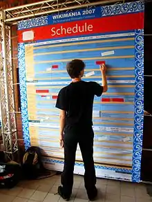 مُتطوع يقوم بتعديل لوحة جدول الأعمال في ويكيمانيا عام 2007.