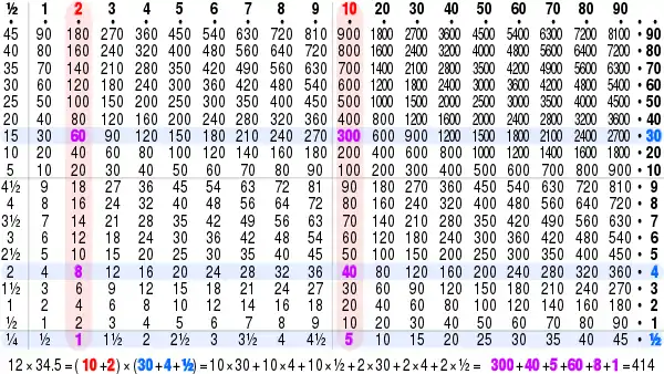 - معرفة عملية الضرب التبادلية: حيث يجب معرفة بأن عملية الضرب هي عبارة عن عملية تبادلية؛ فعلى سبيل المثال يكون ناتج ضرب 7*5، نفس ناتج ضرب 5*7، وهو 35. وايضا فإن 4*8 هي نفس ناتج 8*4 وهو 32 وهكذا، فان المئة رقم في الجدوال 1-10 يمكن حفظ 50 رقم منها لانهاء جدول الضرب كاملا من هذه العملية.
