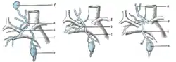 ![]() Terminal collecting trunks of right side. a. Jugular trunk. b. Subclavian trunk. c. Bronchomediastinal trunk. d. Right lymphatic trunk. e. Gland of internal mammary chain. f. Gland of deep cervical chain. Terminal collecting trunks of right side. a. Jugular trunk. b. Subclavian trunk. c. Bronchomediastinal trunk. d. Right lymphatic trunk. e. Gland of internal mammary chain. f. Gland of deep cervical chain. | |
