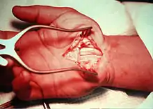 |CitationClass=تم تجاهله (مساعدة)صيانة CS1: BOT: original-url status unknown (link) - Rodner, Craig M.; Katarincic, Julia. (2006)"Open Carpal Tunnel Release". Techniques in Orthopaedics ®21(1):3–11 © 2006 Lippincott Williams & Wilkins, Inc.<http://nemsi.uchc.edu/clinical_services/orthopaedic/handwrist/pdfs/article_carpaltunnel.pdf> نسخة محفوظة 2020-10-04 على موقع واي باك مشين.