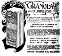 الجرانولا أي الگرانولا هي طعام يتناول في الإفطار أو كوجبة خفيفة ويتكون من حبوب الشوفان المسحوقة والمكسرات والعسل، أو محلى آخر مثل السكر البني أو شراب القيقب، وهي عامة مطبوخة حتى تصير مقرمشة ومحمصة وبنية ذهبية اللون. خلال عملية الطبخ، المادة تُحرّك لتبقى على قوام طليق كقوام حبوب الإفطار. وأحيانا، يضاف الفواكه الجافة مثل الزبيب والتمر، وأحيانا حتى حلويات مثل شوكولاتة. تؤكل الگرانولا كثيرا لإحسان عملية الهضم، وخصوصا إذا احتوت على حبوب الكتان. تؤكل الگرانولا كثيرا مع الزبادي والعسل والفواكه الطازجة (مثل الموز والفراولة والتوت الأزرق) والحليب وأنواع أخرى من حبوب الإفطار. ويوضع على أشكال من المعجنات والحلويات والمثلجات.