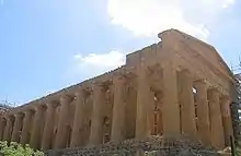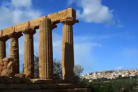 أكثر المعابد محافظة عليها هما مبنيان متشابهان جدا تقليديا ينسبان إلى الالهتين جونو وكونكورديا (رغم أن علماء الآثار يعتقدون أن هذ النسبة غير صحيح). معبد كونكورديا سليم بشكل ملحوظ، بسبب سياسية التنصير تم تحويله إلى كنيسة مسيحية عام 597 م. وقد شيدا على طراز المعبد ذات الأعمدة. أعيد استخدم محيط "معبد كونكورديا" من قبل النصارى الأوائل كسرداب موتى، مع قبور حفرت في الجروف والبروز الصخرية.