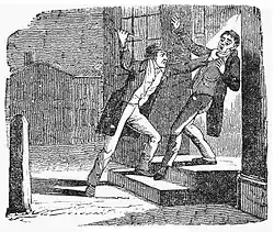 ![]() A depiction of Jereboam O. Beauchamp stabbing سولومون بي. شارب. A depiction of Jereboam O. Beauchamp stabbing سولومون بي. شارب. | |
