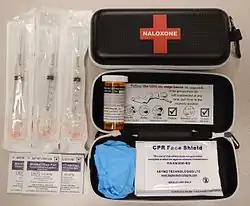 ![]() A naloxone kit as distributed in British Columbia, Canada A naloxone kit as distributed in British Columbia, Canada | |