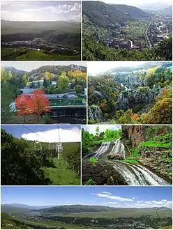 ![]() Jermuk landmarks Jermuk skyline • Mineral springs and lakes Spa resorts • Arpa river canyon Jermuk cableway • Jermuk waterfall Arpa River and bridge • Mineral water gallery | ||