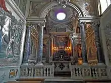 يحتوي دير سانتا ماريا دي جروتافيراتا على عدة ساحات تؤدي إلى الرواق الشهير الذي صممه أنطونيو دا سانغالو الأصغر ، مع رواق من تسعة خلجان مدعومة بأعمدة رفيعة مع عواصم عصر النهضة.