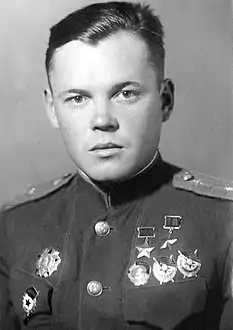 بطل الاتحاد السوفيتي (1944) ميدالية النجمة الذهبية (1944) بطل الاتحاد السوفيتي (1943) ميدالية النجمة الذهبية (1943) التأهيل الطبقي للطيار العسكري | ||||
