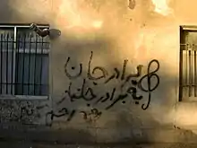 كتابة على جدار منزل في مدينة نيسابور الإيرانية: أيها الأخ كن رحيما لأخيك المجروح في الحرب