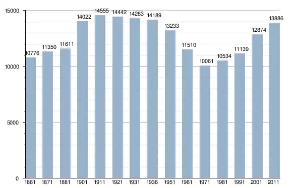 في سنة 1861 بلغ عدد السكان 10٬776 نسمة، وتطور العدد ليصل في سنة 2011 لـ 13٬886 نسمة.