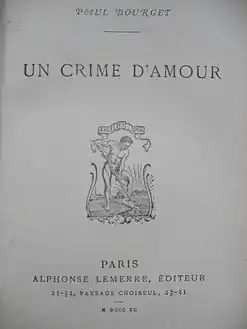 - Paul Bourget, Un crime d'amour, Paris, Lemerre, 1886 (notice BnF no FRBNF30146574r), p. 7.