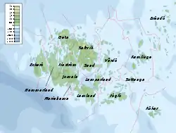 الموانئ الرئيسية هي Mariehamn (جنوب)، Berghamn (غرب) وLångnäs على الشاطئ الشرقي من الجزيرة الرئيسية.