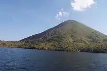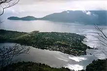 بلدة باندا نيرا (وسط الصورة) وفي الخلف تظهر بلدة لونتار في جزيرة باندا الكبرى