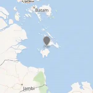 ![]() Red Circle is Lingga Islands, south of أرخبيل رياو, part of جزر رياو province (green) | ||