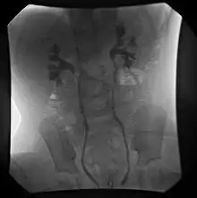 ارتجاع إلى حوض الكلية، والكؤوس الكلوية بدون اتساع.