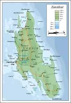 أنغوجا وتسمى أيضا بجزيرة زنجبار وهي أكبر جزر التابعة لزنجبار، وتسمى الأخرى جزيرة بمبا وهي ثاني أكبر جزيرة وتبعد عنها بحوالي 48 كم، وجزيرة هاديمو وتومباتو.[3][4]