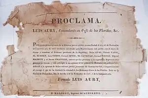 بعد سيطرة قائد القراصنة الفرنسي لويس ميشيل على جزيرة أميليا في عام1817، أعلن "جمهورية فلوريدا" وأعلن الانتخابات. وأعلن عن نتائج هذه الانتخابات (باللغة الإسبانية). بتوقيع لويس اري.