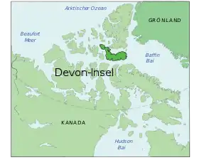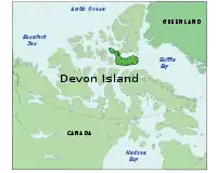 جزيرة ديفون ثاني أكبر جزيرة في أرخبيل جزر الملكة اليزابيت بأقصى الشمال، في نونافوت، كندا.[3][4][5] تعد أكبر جزيرة غير ماهولة في العالم، مساحتها حوالي .55.247 km²، بسبب ارتفاعها، لا يقطن الجزيرة سوى عدد قليل من حيوان ثور المسك.