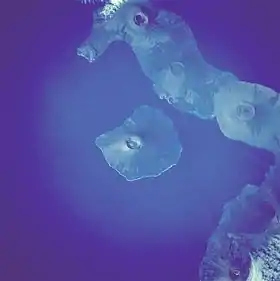 ![]() جزيرة فرناندينا على اليسار ويظهر فوهة بركان الكامبور | |