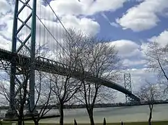 جسر أمباسادور يُطلق عليه رسميًا جسر أمباسادور الدولي (بالإنجليزيّة: Ambassador Bridge؛ بالفرنسيّة: Pont Ambassadeur) هو جسر مُعلَّق مُخصَّص للمركبات، يقطع نهر ديترويت حيث يربط بين ديترويت، ميشيغان في الولايات المتحدة ووندسور، أونتاريو في كندا.[1] يُعتبر هذا الجسر المعبر الحدودي الأكثر ازدحامًا في أمريكا الشماليّة بالنسبة للحجم التجاري، حيث أن أكثر من 25% من مجمل تجارة البضائع بين الولايات المتحدة وكندا تعبر منه. كما يحمل الجسر من 60 إلى 70 بالمئة من حركة الشاحنات التجاريّة في المنطقة.[2][3]