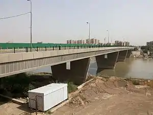 تم تصميم الجسر عام 1977 بشكل مشابه لكثير من جسور بغداد، وهي الجسور ذات العوارض (بالإنجليزية: Girder bridge). ويبلغ طوله ما يقارب 855 متر.