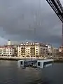 في 16 يونيو 1893 أفتتح أمام حركة المرور، ليكون أول جسر معلق في العالم ينقل المارة والسيارات بواسطة سلة نقل كبيرة مُعلقة. شكل هذا الجسر نموذجًا للعديد من الجسور المماثلة في أوروبا وأفريقيا وأمريكا، ويُعتبر بناءً هندسيًا معدنيًا من مخرجات الثورة الصناعية.[1]