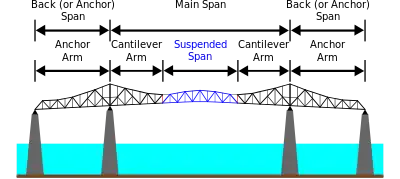 يتم تشكيل الكابول البسيط من قبل ذراعين كابوليين ممتدان من اتجاهات متعاكسة حتى يتقطعان. في الحالات الشائعة في المسافات الممتدة، لا تتلاقي أذرع الكابول في المركز، وبدلا من ذلك، فانهما يدعمان جسر الجمالون الوسطي الناتئ. ويمكن للمسافات الممتدة أن تٌبنى خارج الموقع وتنقل اليه لاحقا كعناصر مسبقة الصنع، أو يتم بناؤها في داخله باستخدام دعائم نقل خاصة.