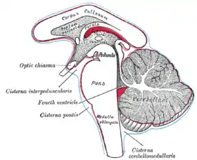 سقف (تشرح عصبي) Tectum، سويقة مخية Cerebral peduncle، برتيكتوم Pretectum، المسال الدماغي |