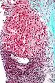 أجسام مالوري -تحت المجهر- في مركز الصورة، وتبدو بلون وردي داكن.
