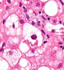 |CitationClass=تم تجاهله (مساعدة) - Denk, H; Franke, WW; Eckerstorfer, R; Schmid, E; Kerjaschki, D (August 1979). "Formation and involution of Mallory bodies ("alcoholic hyalin") in murine and human liver revealed by immunofluorescence microscopy with antibodies to prekeratin" (PDF). Proceedings of the National Academy of Sciences of the United States of America. 76 (8): 4112–6. doi:10.1073/pnas.76.8.4112. PMC 383988. PMID 386356. مؤرشف من الأصل (PDF) في 2 مايو 2020. الوسيط