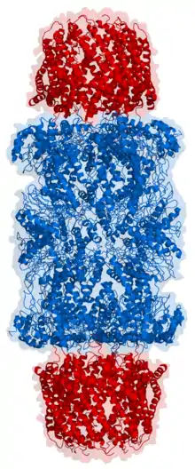 - Peters JM, Franke WW, Kleinschmidt JA (1994). "Distinct 19 S and 20 S subcomplexes of the 26 S proteasome and their distribution in the nucleus and the cytoplasm". J Biol Chem. 269 (10): 7709–18. PMID 8125997. مؤرشف من الأصل في 24 فبراير 2020. الوسيط