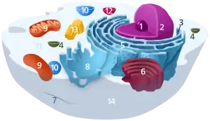 وتتكون إنزيمات الجسم الحال في العصارة الخلوية والشبكة الإندوبلازمية.