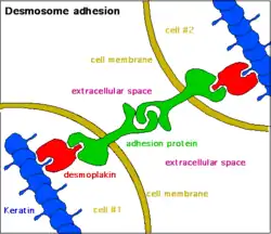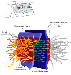 |CitationClass=تم تجاهله (مساعدة) - Garrod, David; Chidgey, Martyn (2008-03-01). "Desmosome structure, composition and function". Biochimica et Biophysica Acta (BBA) - Biomembranes. 1778 (3): 572–587. doi:10.1016/j.bbamem.2007.07.014. مؤرشف من الأصل في 24 سبتمبر 2015. الوسيط
