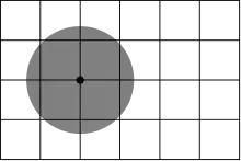 نظرا لمجموعات محددة من الخصائص لأجسام ممتدة (ليست نقطية) فإنها أحيانا تتصرف وكأنها جسيم نقطي حتى في الجوار المباشر. مثال: الأجسام الكروية المتفاعلة في فضاء ثلاثي الأبعاد بحيث يكون تفاعلها مطابق لما في قانون التربيع العكسي فإنها تتصرف كما لو مادتهم متركزة في نقطة مركزية. فمثلا في الجاذبية النيوتنية والكهرومغناطيسية الكلاسيكية تتطابق المجالات خارج الجسم الكروي مع الجسيمات النقطية متساوية الشحنة/الكتلة الموجودة في مركز الكرة.[3][4]