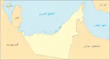 ساحل الخليج العربي : تمتد سواحل دولة الإمارات العربية المتحدة المطلة على ساحل الخليج العربي مسافة (644 كيلومتر) من قاعدة شبه جزيرة قطر غربا و حتى إمارة رأس الخيمة شرقا، والتي تبلغ مساحتها الكاملة ما يقارب 750 كم مربع، وتنتشر عليها الإمارات التالية: