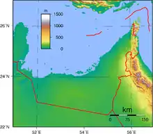 ساحل خليج عمان : تمتد سواحل دولة الإمارات العربية المتحدة المطلة على ساحل خليج عمان مسافة (90 كيلومتر) و تقع عليه إمارة الفجيرة.
