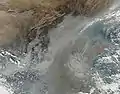 Natural colour satellite image of a ضبخان event in the heart of northern China