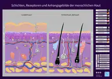 ويوجد في الجلد كثيرٌ من نهايات الأعصاب الحساسة للبرودة والحرارة، وكذلك النهايات العصبية الخاصة بالألم والضغط واللمس.