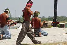 جلد الذات بواسطة أداة مؤذية مثل السوط أو السلاسل الحديدية ممارسة دينية موجودة في بعض الديانات.