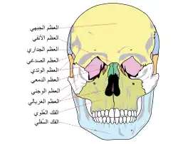 ![]() منظر أمامي لجمجمة الإنسان منظر أمامي لجمجمة الإنسان | |