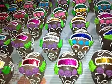 الحلوى مصنوعة من قصب السكر، وغالبًا ما تكون قطعة واحدة وبدون تلوين (إلا أنه في بعض الأحيان تضيف القليل من الفانيليا)، ومزينة بخطوط حلوة أخرى مع صبغة الخضروات، وعادة ما تكون خضراء أو زرقاء أو صفراء أو حمراء. تحتوي أيضا على أوراق الألوان المعدنية اللامعة، والجبين عادة ما يحتوي على كتابة مع الحلوى الثانية المذكورة، واسم الشخص المحدد يكون عموما على قيد الحياة. بعض الناس يحتفظون بهذه الحلوى لبضعة أيام ثم يرمونها، والبعض الآخر يأكلها.
