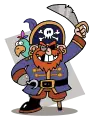Stereotypical cartoon pirate sporting the skull-and-crossbones on his hat