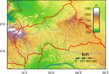 | أخفض نقطة | أوبانغي (335 متر ) |