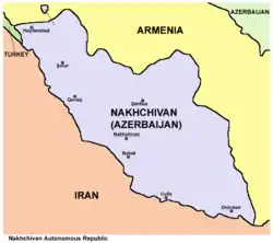 ناخيتشيفان (نَخجَوان) إقليم بأذربيجان مساحته تبلغ حوالي 5363 كيلومتر مربع وهو منفصل جغرافياً عن باقي أذربيجان.[2][3][4] ويتطلب الوصول إليه المرور إما عبر أذربيجان الغربية التي هي مقاطعة إيرانية أو عبر أرمينيا. ويتيح إقليم ناخيتشيفان لأذربيجان الاتصال الجغرافي مع تركيا من خلال نافذة عرضها 8 كيلومترات فقط، عاصمته هي مدينة ناختشيفان.