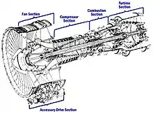 - ضاغط: 1 مروحة المرحلة، 3 مرحلة الضغط المنخفض، و 14 مرحلة ارتفاع ضغط ضاغط محوري