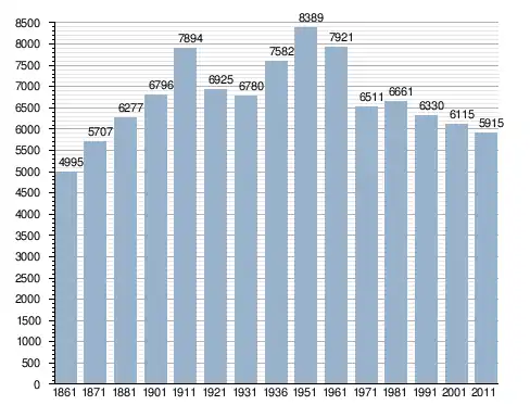 في سنة 1861 بلغ عدد السكان 4٬995 نسمة، وتطور العدد ليصل في سنة 2011 لـ 5٬915 نسمة.