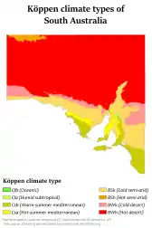 |CitationClass=تم تجاهله (مساعدة); تحقق من التاريخ في:|accessdate=(مساعدة) - "المناخ في جنوب أستراليا" (PDF). مؤرشف من الأصل (PDF) في 18 يناير 2021. اطلع عليه بتاريخ 29 يناير 2021. الوسيط